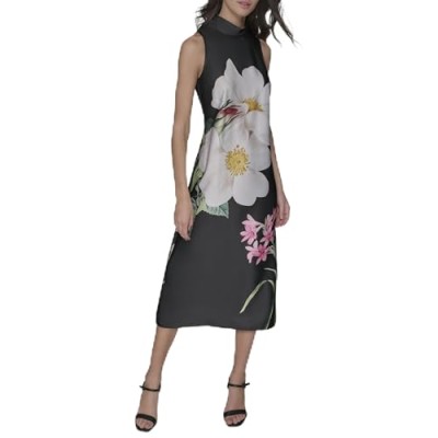 Women's Mock Neck Sleeveless Midi Sheath Dress