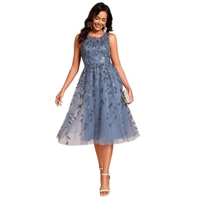 Women's Sequin Sparkly Crew Neck Short Sleeve Tea Length Evening Dress 20736
