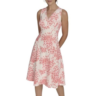 Sleeveless Midi Floral Dress for Women-V-Neck Wedding Guest and Bridal Shower Summer Outfit