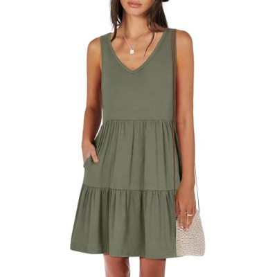 Womens Summer Casual Tank Dress Sleeveless V Neck T Shirt Sundress Flowy Tiered Swing Mini Beach Vacation Dresses