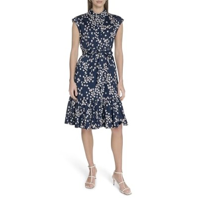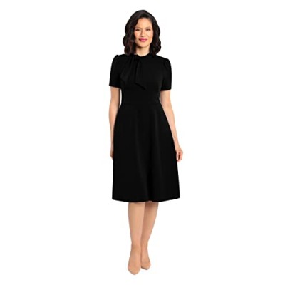 Women's Crepe Fabric Flight Attendant Bow Neck Tie Short Sleeve A-line
