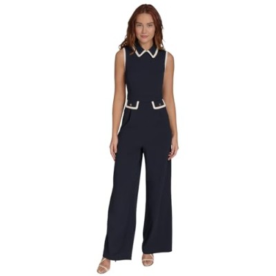Womens Pocketed Collared Contrast Sleeveless Dress