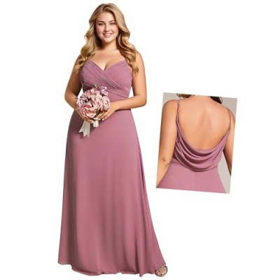 Women's Summer Chiffon Pleated Plus Size Bridesmaid Dresses Sleeveless Formal Gown with Spaghetti Straps