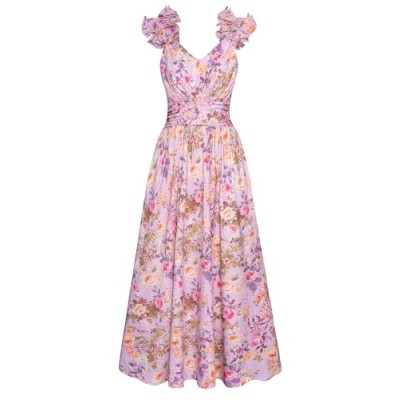 2025 Women's Summer Floral Print Dress Sleeveless Casual Flowy Sundress A Line Ruffle Wedding Guest Outfit