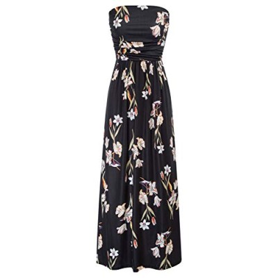 Women Strapless Casual Loose Ruched Long Maxi Dress with Pockets