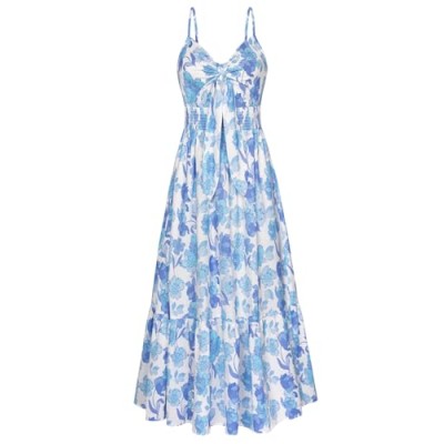 Women's 2025 Summer Maxi Dress Floral Tie Front Spaghetti Strap Casual Boho Beach Flowy Sundress with Pockets
