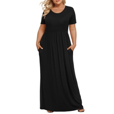 Women's Plus Size Maxi Dresses for Curvy Women Summer Short Sleeve Casual 2025 Long Dress XL-6XL