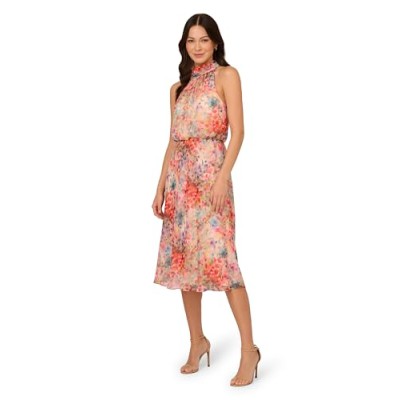 Women's Sleeveless Halter Neck Fit & Flare Midi Dress