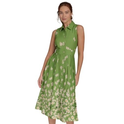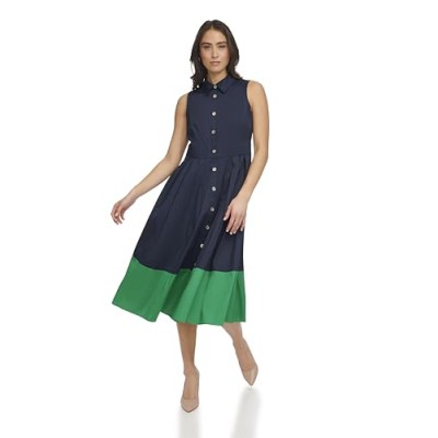 Women's Cotton Sateen Fabric Sleeveless Midi Shirt Dress