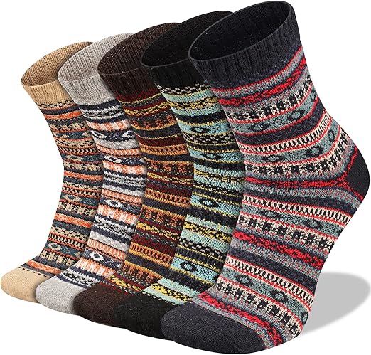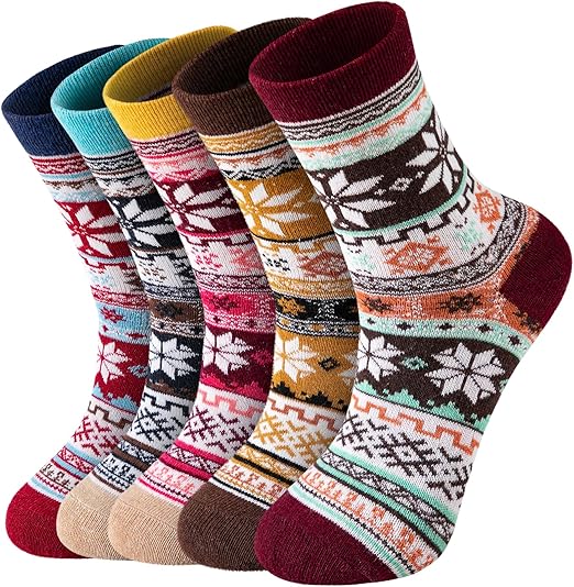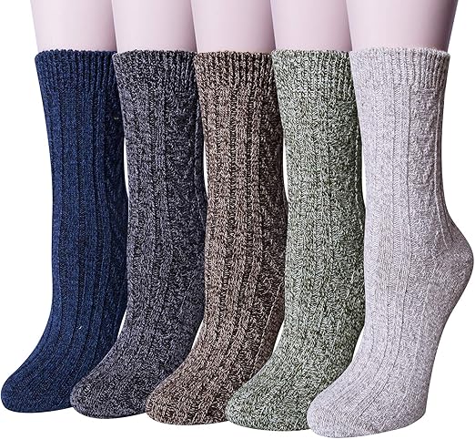 Pack of 5 Womens Wool Socks Winter Warm Thick Knit Soft Vintage Casual Crew Boot Socks Gifts