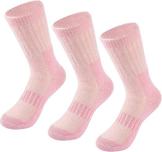3 Pairs Kids Merino Wool Hiking Socks, Winter Warm Thick Cozy Thermal Ski Socks for Boys Girls Toddler