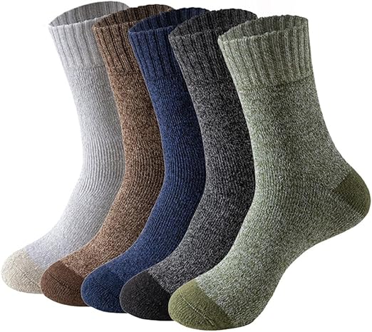 Men's Winter Wool Socks Thermal Warm Soft Crew Socks (5 Pairs)