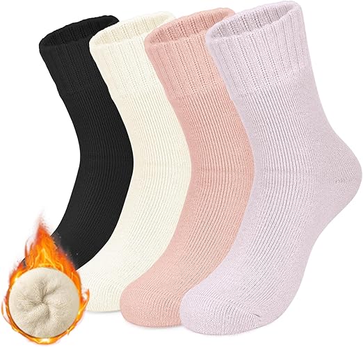 4-Pairs Winter Warm Socks for Kids - Merino Wool Thickened Cotton Socks