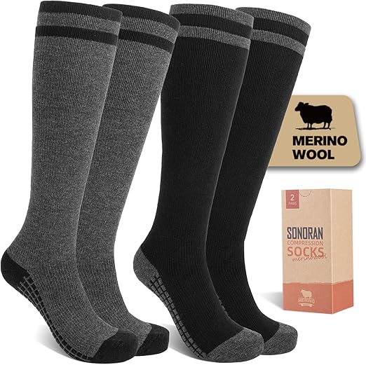 Merino Wool Compression Socks for Women Men (2/3 Pairs) Knee High Winter Thermal Thick Warm for Nurse Pregnant Travel